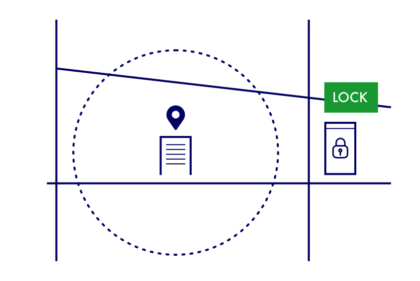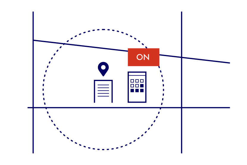 Fence)は、地理的なエリアに基づいてトリガーされる技術です。具体的には、仮想的な境界線(フェンス)を地図上に設定し、そのエリア内にデバイスが出⼊りする際に通知やアクションを実⾏する仕組みです。この技術はGPSやWi-Fi、セルラーネットワークを利⽤してデバイスの位置を特定し、設定されたエリアに基づいて特定の動作を⾏います。