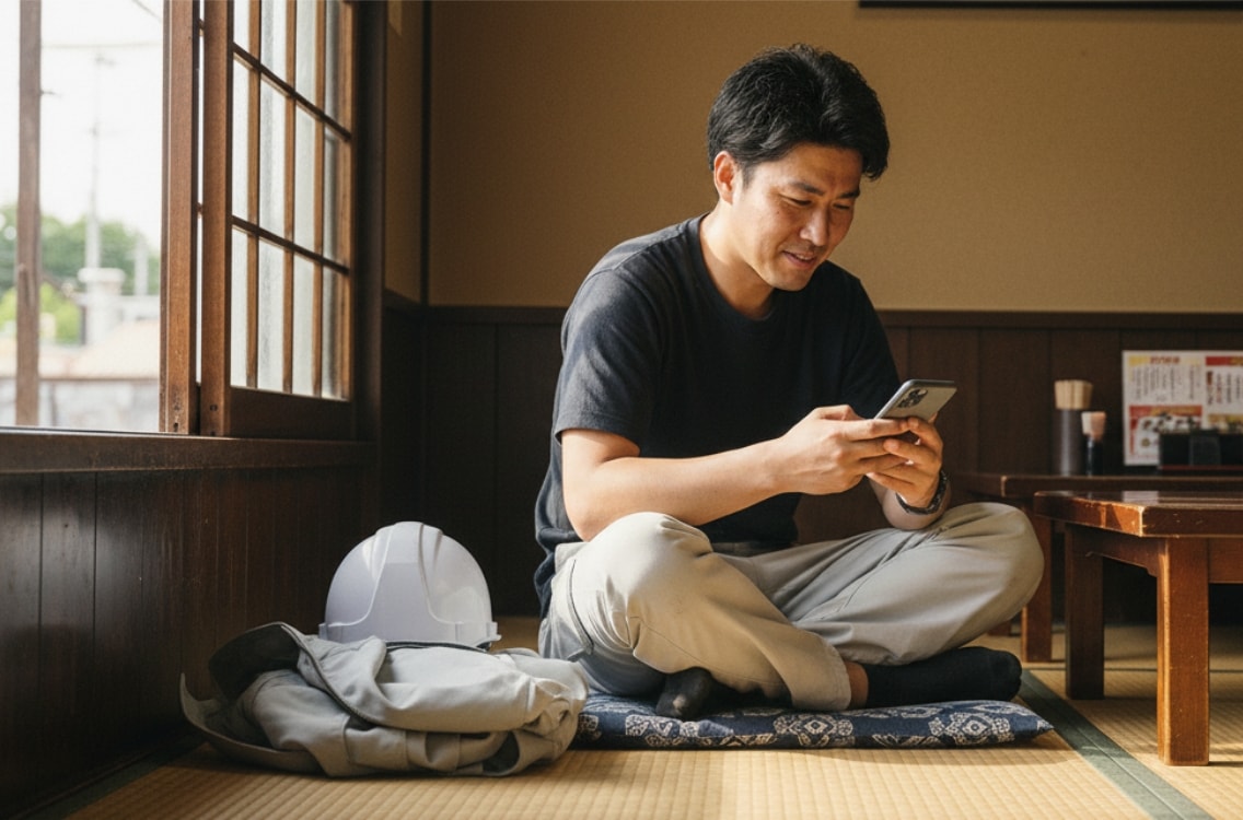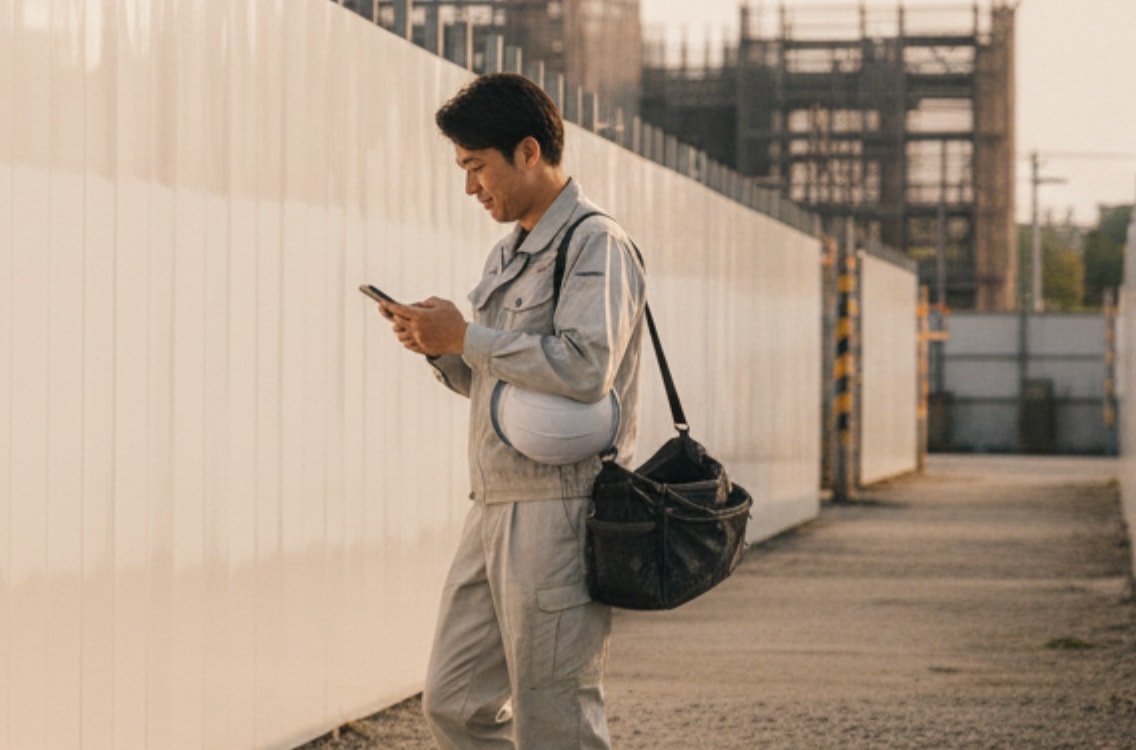 協力会社の腕利き職人。プライベートのスマホを仕事で使うことに少し抵抗がある。